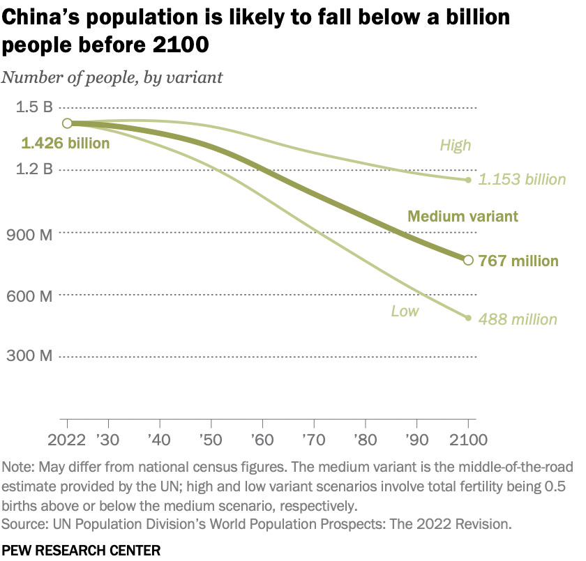 You don’t have to wait till 2100. China’s real population is inflated. If you take India’s growth model as a benchmark for a developing nation, the Chinese population is likely to be around 800-900 million at most. Current Chinese population figures like its annual GDP cannot be trusted. So China’s demographic decline is even faster. The Chinese earlier growth is predicated on the continued availability of a large youthful labor and domestic consumer market. As we already know, China’s consumer market is woefully weak, and much of the consumer spending is already tied up in the debt-ridden property market. The cost of raising kids in China is very, very, very expensive. This has a huge impact on China’s population growth.