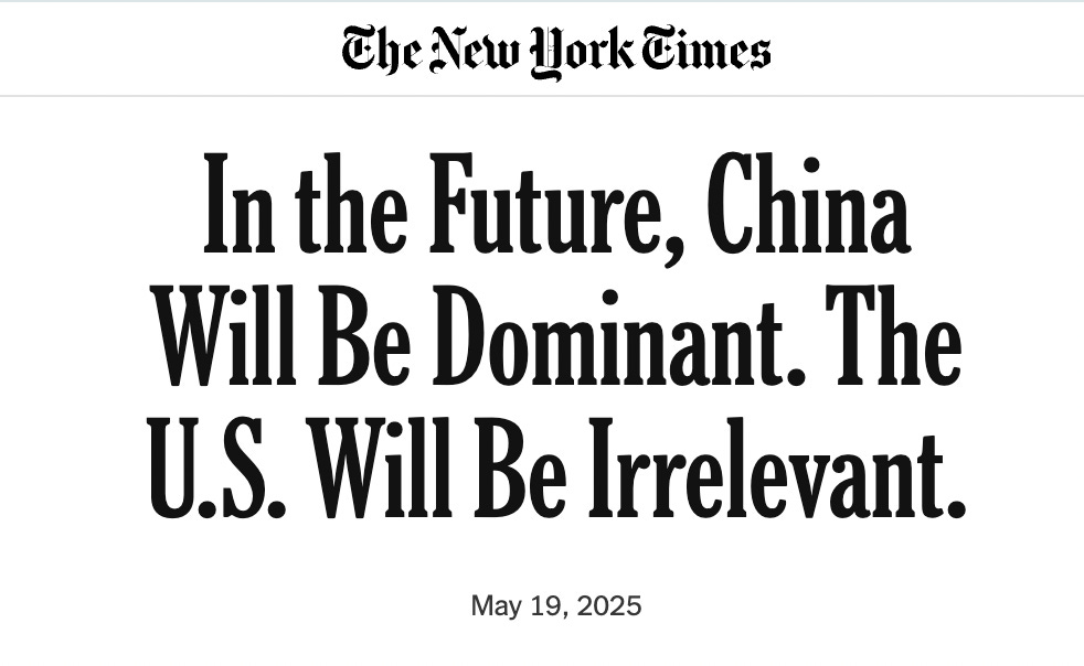 And meanwhile, the mainstream media narrative on China has shifted as well. The headlines moved from China’s collapse to China’s dominance in manufacturing, EVs, and industrial capacity. And thanks to Trump’s unpredictability, Beijing now (at least on the surface) almost seems like the more stable superpower out of the two - something that would seem unthinkable not that long ago.